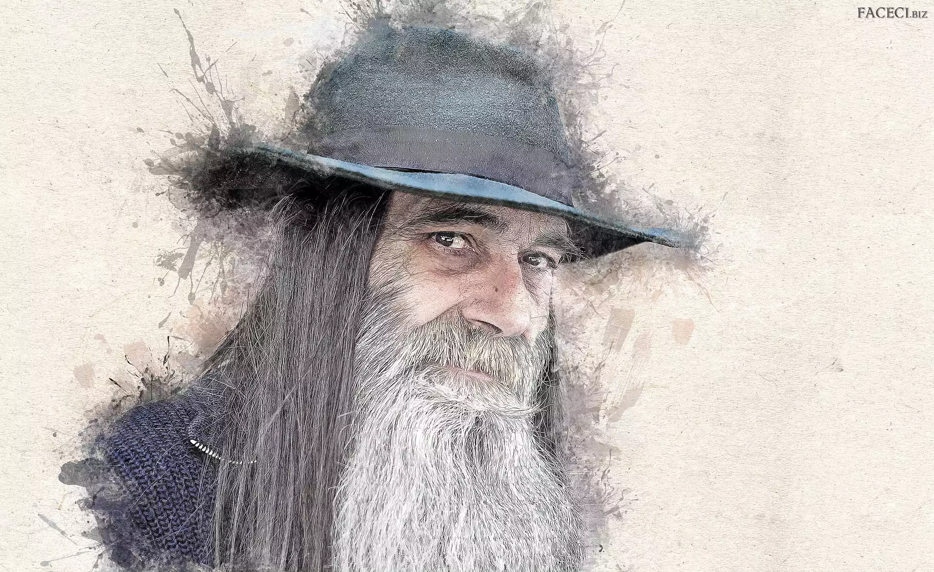 Siwa, Kapelusz, Broda, Grafika, Włosy, Długie, Starzec, Mężczyzna, Zarost - faceci.biz